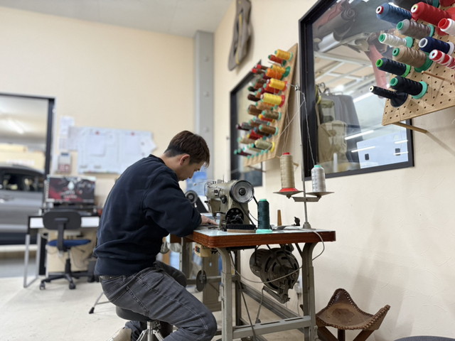 先程裁断した表皮をミシンを使用して縫製していきます。