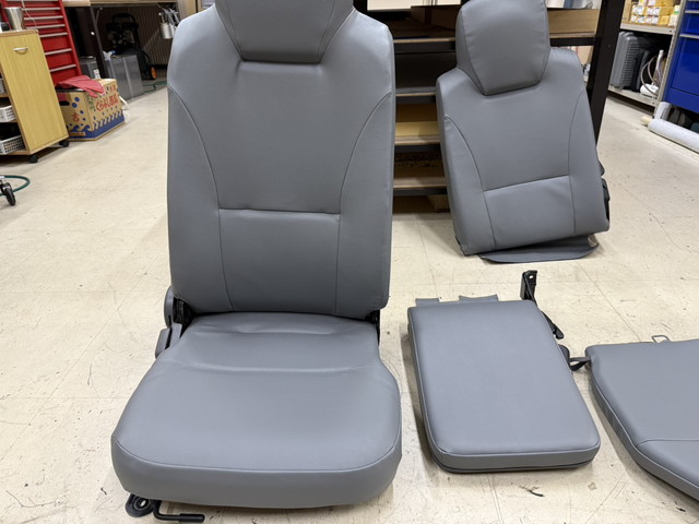 いすゞ エルフの運転席・助手席シートにおいて、 長期使用による表皮の劣化により、破れやへたりが見受けられたため 今回、見た目のリフレッシュという事でシート張り替えをご依頼いただきました。