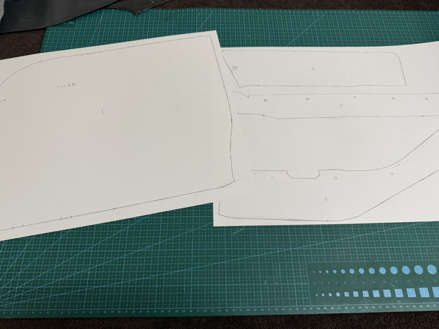 ・先程取った型を新規の表皮へ落とし込んでいき、書いたラインに沿って裁断をしていきます。