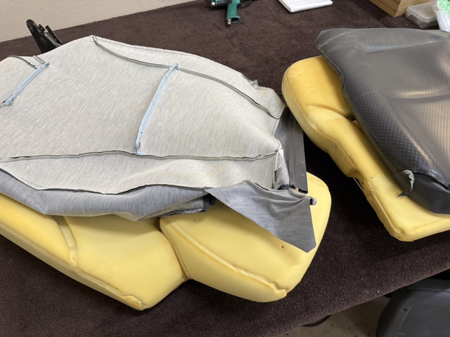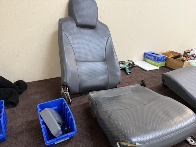 シートは持込みいただいたので早速、既存表皮の取り外しにかかります。 ◆シートの分解から既存表皮の取り外し