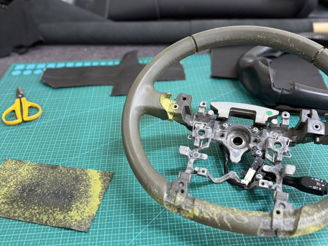 施工内容 • ステアリング脱着・分解 • 下地処理・型取り・縫製