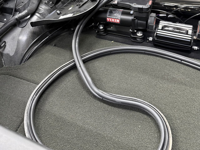 • ダッシュボード エアコンパネル ブラック一色の純正状態から、内装に馴染む配色へ変更。視界に入る部分をイベント仕様に。 • グローブボックス ダッシュボードと連動した張り替えで、後付け感のない仕上がり。