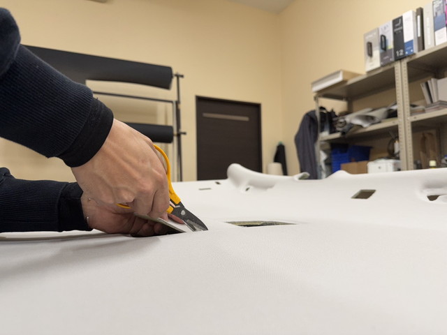 ・下地クリーニング・調整 ・新品天井生地へ張り替え(生地:三和商会様 SWスポーツニット・シルバー)