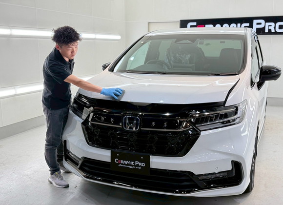 堺市のカーメイクアートプロです。 今回はファミリーカーとして幅広い世代に人気の HONDA オデッセイ に、最新のセラミックコーティング 「CERAMIC PRO ION」 を施工させていただきました。