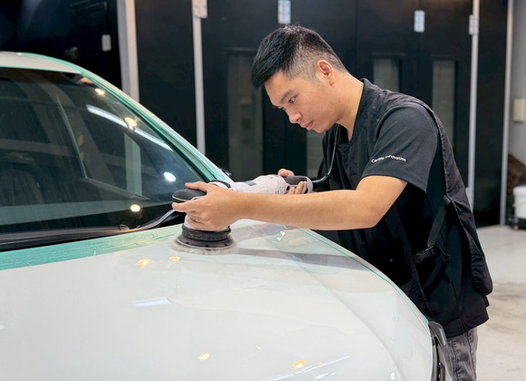 磨き(ポリッシング)小キズやくすみを除去し、塗装本来の美しさを引き出すと同時に、コーティングの密着性を高めます。