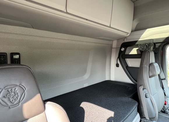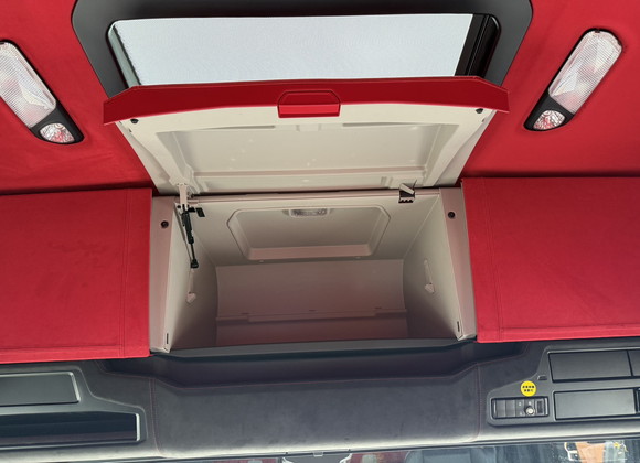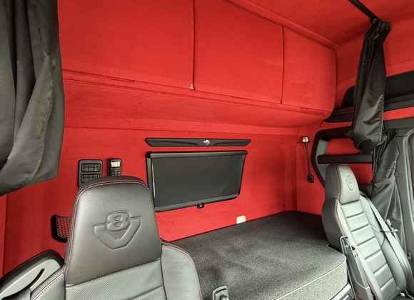 SCANIA 520Sの重厚な存在感に、赤のアルカンターラが映える極上のインテリアへと生まれ変わりました。