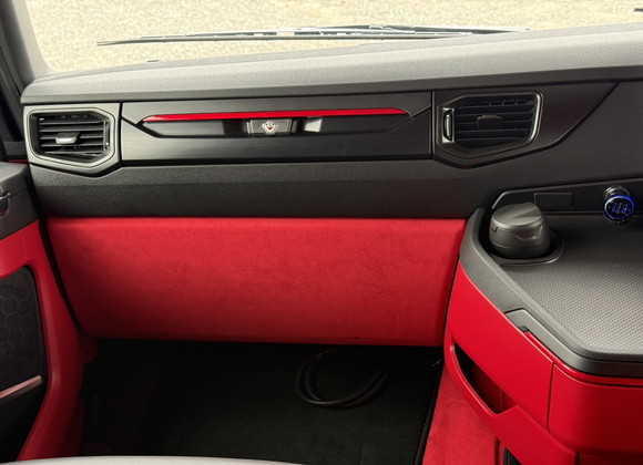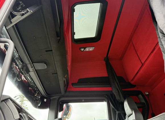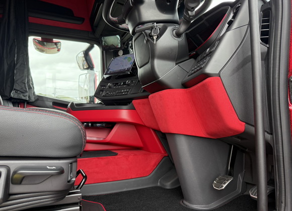 今回ご紹介するのは、SCANIA 520Sのインテリアカスタム張替施工です。重厚で存在感のあるトラックに、赤色のアルカンターラを使用して内装を張り替え、唯一無二のラグジュアリー空間へと仕上げました。