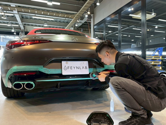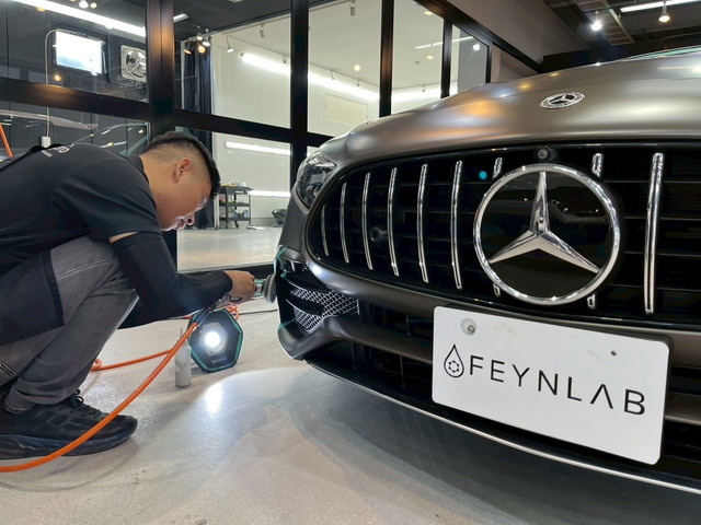マット塗装は通常のコーティングを施工してしまうと、 艶が出すぎたり、質感を損ねてしまう恐れがあります。 そこで今回施工させていただいたのが、 **マット塗装専用に開発された「FEYNLAB MATTE CERAMIC」**です。