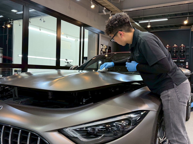 2. FEYNLAB MATTE CERAMIC 施工 専用コーティングをムラなく均一に塗布し、 マットの質感を保ったまま、強固な保護層を形成します。